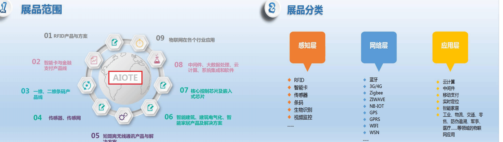 網絡層:通信技術、通訊模組產品、核心控制芯片、嵌入式芯片、云計算、大數據、物聯網云平臺、網絡與信息安全、物聯網地址編碼等;