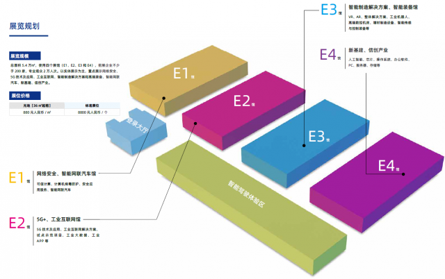 總面積5.4 萬㎡,使用四個展館(E1、E2、E3 和E4),招展企業不少于200 家,專業觀眾2 萬人次。以實體展示為主,重點展示網絡安全、5G 技術及應用、工業互聯網、智能制造解決方案和高端裝備、智能網聯汽車、新基建、信創產業。